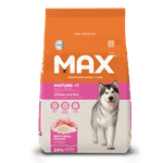Max Mature +7 Pollo & Arroz, es un alimento Premium Especial nutricionalmente balanceado, desarrollado para perros mayores con más de 7 años de edad. Con mayor aporte de proteínas y equilibrio de las fibras, el producto lleva, además, en su composición, prebióticos, para heces más firmes. Otro diferencial importante para el bienestar de los perros en esta fase de vida es la presencia de condroitina y glucosamina, que contribuyen a las articulaciones más saludables.