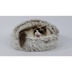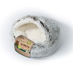 Cama para mascotas – 50 x 30 cm (altura). Ideal para perros y gatos que buscan comodidad y abrigo. Su exterior en felpa PV y espuma proporciona suavidad al tacto, mientras que el fondo antideslizante garantiza estabilidad en cualquier superficie. Elaborada con botellas de plástico 100% reciclables, combina confort y sostenibilidad.