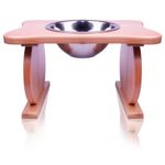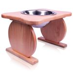 Comedero elevado de madera con cuenco metálico