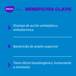 Shampoo de acción antiséptica y antiseborreica oleosa, indicado para el manejo de afecciones dermatológicas en mascotas. Presentación en envase de 250 ml con cámara de aire que permite su correcta agitación